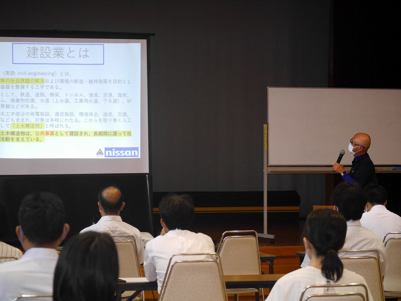 星雲会館にて、熊崎部長が小中学校の教員方へ建設業について講演をしました😄